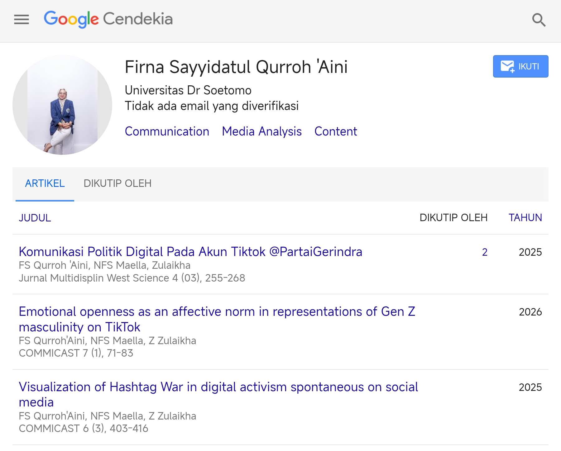 Melalui prosesi Yudisium ini, Fikom Unitomo Surabaya berharap para lulusannya, termasuk insan-insan akademis seperti Firna, dapat membawa dampak positif yang nyata, baik di bidang komunikasi, literasi, maupun penelitian sosial di tengah masyarakat.